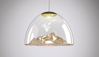 Le luminaire Mountain View du designer Dima Loginoff n'est pas un simple luminaire, mais une véritable œuvre d'art. Manifestement inspiré par la nature, l'intérieur du luminaire représente une chaîne de montagnes. Mountain View est fabriqué à partir d'une seule pièce de verre soufflé. L'abat-jour réunit sans transition l'enveloppe extérieure en forme de cloche et la partie intérieure en forme de montagne. Pour l'observateur, la montagne est différente de chaque côté. Cela a son charme du point de vue esthétique, mais aussi du point de vue de l'éclairage. En effet, les courbes prononcées de la montagne divisent la lumière, mais n'empêchent pas la diffusion agréable et harmonieuse de la lumière tout autour. Ainsi, si vous êtes à la recherche d'un luminaire particulièrement expressif qui s'intègre parfaitement dans une ambiance extravagante, vous serez bien inspiré de choisir Mountain View. Le luminaire LED en verre transparent est disponible avec un cadre chromé ou doré, ainsi qu'avec un massif montagneux de couleur ambre.