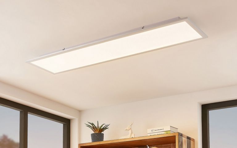 Dans le secteur commercial, les panneaux LED sont souvent insérés dans des plafonds suspendus. Chez les particuliers, en revanche, ils sont mis en valeur en tant que plafonniers ultramodernes. Avec Lindby Smart, la couleur de la lumière et la température de couleur peuvent être réglées à tout moment via l'application. Ainsi, une seule et même source de lumière peut être utilisée pour vivre et travailler de la même manière.