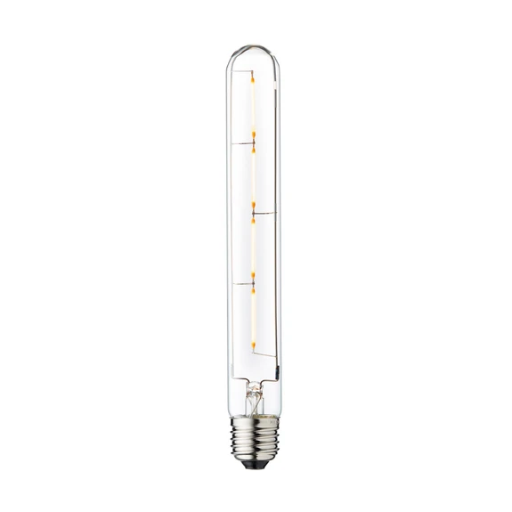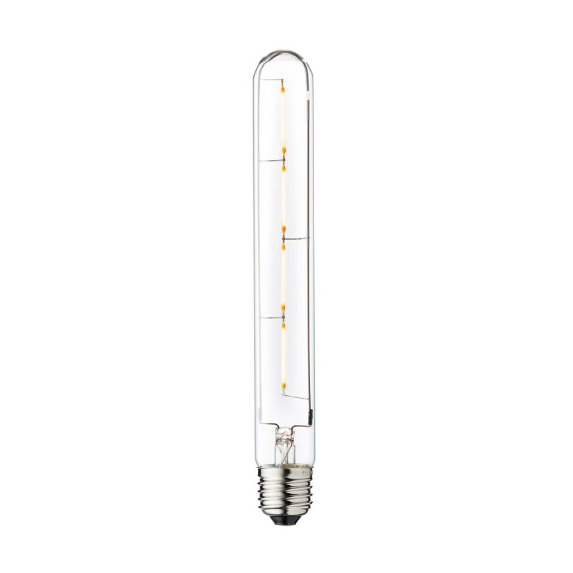 Ampoule tubulaire LED 225 avec culot E27, 3,5 watts, 2200 kelvins, intensité variable L'ampoule tubulaire LED 225 pour douilles E27 se présente, comme son nom l'indique, sous forme de tube. Ses filaments élégamment conçus sont visibles à travers le verre transparent. De plus, elle séduit par sa température de couleur très chaude qui crée une atmosphère agréable. Long Tube est à intensité variable et convient parfaitement à une utilisation dans des luminaires de conception ouverte.