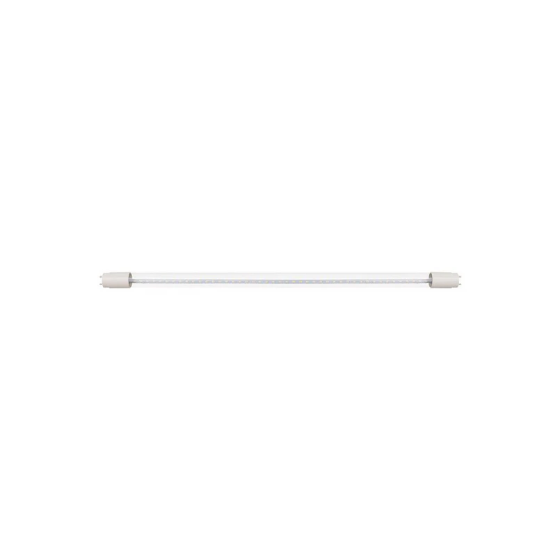 Ampoule tubulaire LED T8 à rayonnement blanc chaud avec culot G13 Cette ampoule LED en forme de tube pour un fonctionnement direct sur 230 V sert de remplacement efficace en énergie et de longue durée aux tubes fluorescents T8 G13 traditionnels. L'ampoule est dotée d'une enveloppe en verre transparent, émet une lumière blanche chaude et n'est pas dimmable.
