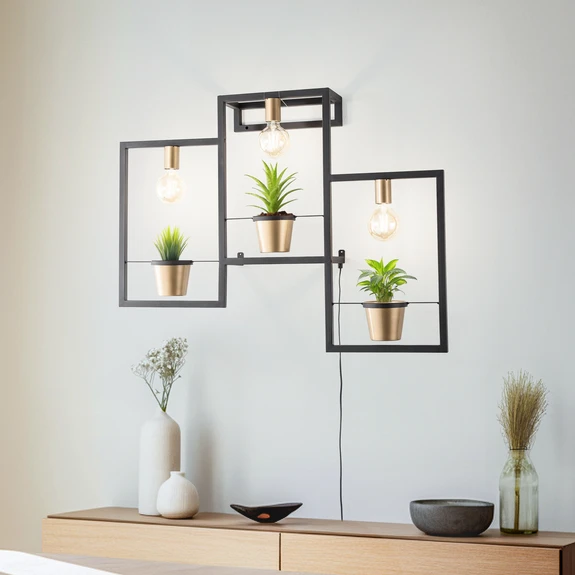 Applique murale Flores, à 3 lampes, noir/or, avec connecteur