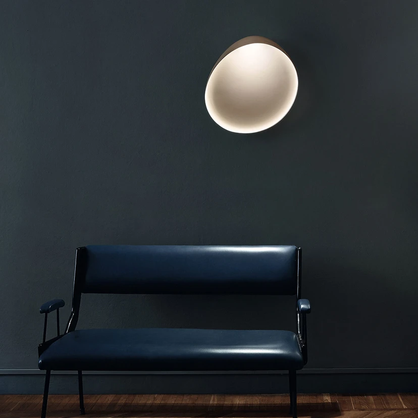 Applique murale LED plate Lake avec effet 3D Au premier abord, la forme de l'applique murale LED Lake ne semble pas vraiment tangible et on aimerait bien faire connaissance avec l'applique murale LED par le toucher pour savoir comment elle est faite. Une astuce optique fait paraître la lampe volumineuse lorsqu'elle est allumée. En réalité, le modèle est composé d'un diffuseur en plastique ABS de haute qualité et est relativement plat. Sur un côté, il y a un chevauchement du plastique et on a l'impression que la lumière sort par là et éclaire toute la forme du luminaire. Cet effet est dû à des abat-jour réfléchissants à l'intérieur de l'applique murale. La possibilité d'orienter individuellement le luminaire lors du montage donne une plus grande liberté de conception. Si celle-ci est placée en combinaison avec plusieurs luminaires sur un mur et que ceux-ci brillent dans différentes directions, on obtient une image intéressante qui ressemble presque à une œuvre d'art. L'équipe de designers Paolo Lucidi et Luca Pevere a créé ce luminaire en 2015. La forme de Lake peut être interprétée de différentes manières : On pourrait par exemple décrire l'applique murale LED comme une vue aérienne d'un lac ou une tache d'encre qui s'étend dans l'eau. La lumière se propage du bord extérieur vers l'intérieur et la surface du luminaire semble presque "liquide" en raison de la fluidité de la transition. Même éteinte, l'applique murale séduit par sa présence chatoyante et élégante et confère aux grands murs couleur, lumière et mouvement.