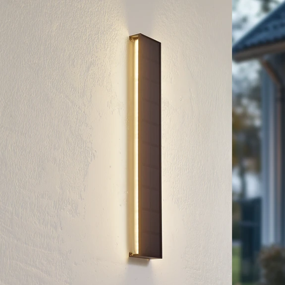 Applique murale LED solaire à intensité variable Laarni avec protection IP54 Cette applique murale allie fonctionnalité et efficacité énergétique et convient parfaitement à une utilisation en extérieur grâce à la protection IP54. La source lumineuse LED intégrée assure un éclairage agréable tout en contribuant aux économies d'énergie. La fonction de gradation incluse en 4 étapes permet d'adapter individuellement l'intensité lumineuse afin de créer l'atmosphère appropriée à chaque situation. L'orientation de la source lumineuse, qui fait face au mur, produit un éclairage indirect, non éblouissant, qui sert de lumière d'orientation dans l'obscurité. Grâce au module solaire intégré, le luminaire se recharge de manière totalement autonome.
