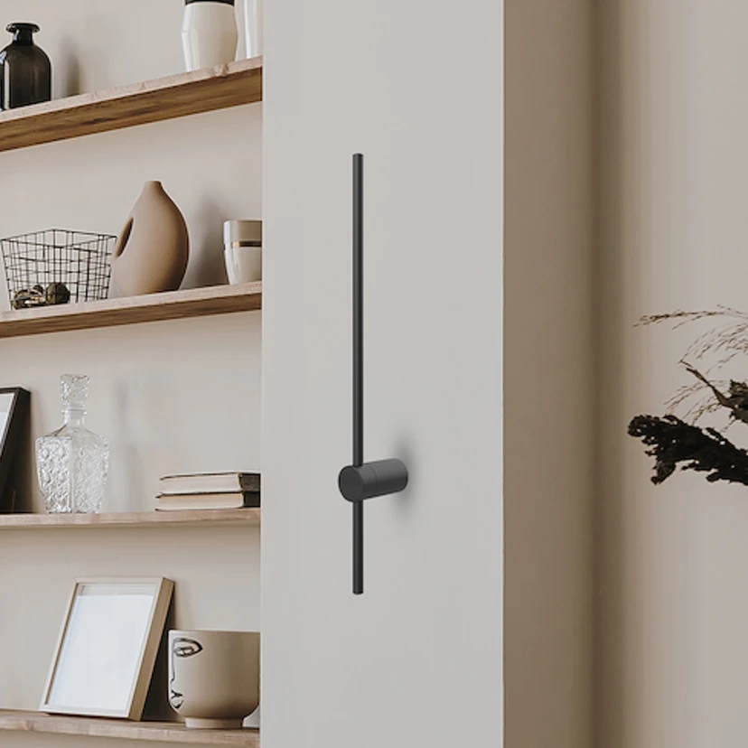 L'applique murale LED Swing a été conçue dans des formes rondes avec un support mural cylindrique et une tige mince et verticale dans laquelle sont intégrées les LED à l'arrière. On obtient ainsi un éclairage indirect qui peut être commuté en trois couleurs de lumière à l'aide d'un interrupteur CCT situé à l'arrière de l'applique lors du montage : éclairage blanc chaud pour une lumière agréable, lumière blanche neutre pour une atmosphère fraîche ou éclairage lumière du jour pour travailler.