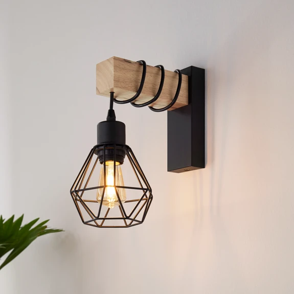 Applique murale Townshend, largeur 14 cm, noir/chêne
