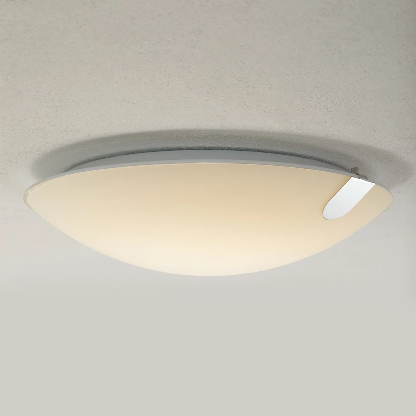 Plafonnier LED Telie - une source de lumière intemporelle pour l'éclairage général Le plafonnier LED Telie, avec son abat-jour en verre blanc opale sobre de forme ronde et évasée convexe, maintenu par deux clips métalliques chromés brillants, est un plaisir qui dure longtemps. Elle est équipée d'une source lumineuse LED efficace en énergie et à faible consommation dans la couleur de lumière blanc chaud et assure un éclairage d'ambiance de base ou de zone. Telie se combine avec d'innombrables styles d'aménagement - ballast inclus