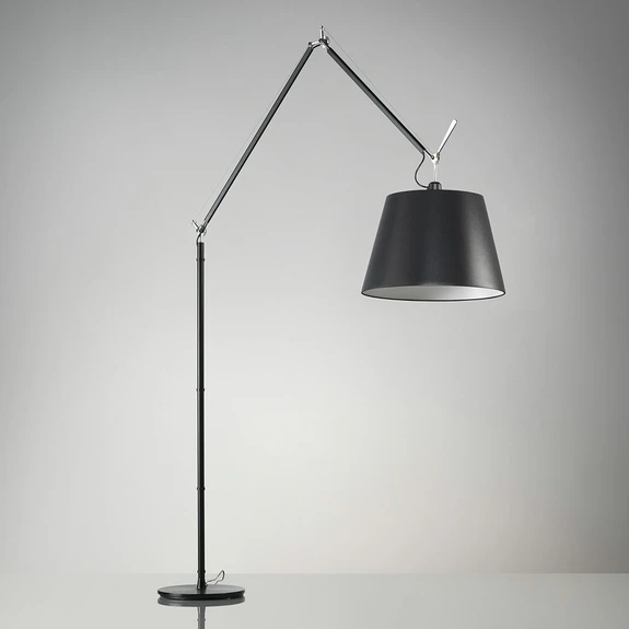 Lampe sur pied LED à intensité variable Tolomeo Mega avec abat-jour en tissu Un éclairage LED puissant, une structure en aluminium à réglages multiples avec système d'équilibrage à ressort et un abat-jour textile en satin de haute qualité qui confère une note exclusive à l'ambiance lumineuse, c'est ainsi que se présente le lampadaire LED Tolomeo Mega, dont le design est basé sur la lampe de table Tolomeo conçue dès 1986 par Michele De Lucchi et Giancarlo Fassina, mais dans un format nettement plus grand. La lampe peut être réglée à l'aide d'un interrupteur sur le câble. Avec Tolomeo, dont les lampes comprennent entre-temps toute une série de différentes tailles et de différentes techniques d'éclairage, les deux designers ont réussi un projet qui est déjà devenu un evergreen grâce à sa beauté intemporelle et à sa fabrication incomparable et qui est exposé dans de nombreux musées dans le monde entier. Tolomeo est un produit design de la maison Artemide, un fabricant de lampes existant depuis 1960, dont les produits sont synonymes de design de haute qualité dans le respect des aspects durables.
