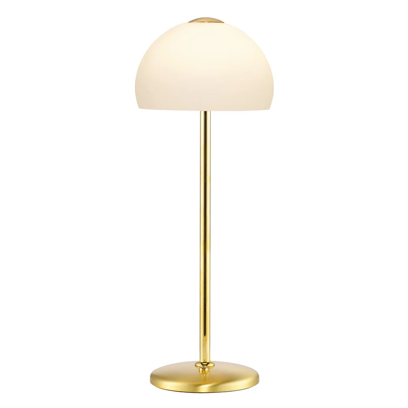 Lampe de table LED Meisterwerke avec abat-jour en verre opale semi-circulaire et structure en laiton Cet accessoire d'éclairage de grande qualité est issu de la fabrication allemande du fabricant BANKAMP. La lampe à poser Meisterwerke est synonyme d'élégance pure et d'éclairage de base et d'appoint agréable et s'harmonise avec les concepts d'aménagement modernes et classiques, que ce soit dans l'habitat privé ou dans les hôtels, lounges et restaurants. Le pied rond, le support élancé et la section centrale sur l'abat-jour sont en laiton massif à la finition mate avec des détails brillants. L'abat-jour en verre opale, conçu comme une demi-sphère ouverte en bas, diffuse une lumière douce tout autour. L'intensité de la lumière peut être réglée à l'aide de l'interrupteur à variateur situé sur le pied.