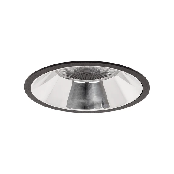 Luminaire encastrable LED Apollo Mega avec réflecteur lisse, rond, dimmable DALI De l'éclairage homogène à la mise en place d'accents précis - le downlight encastrable LED rond Apollo Mega permet de remplir les tâches d'éclairage les plus diverses. La série de luminaires encastrés à LED Apollo permet de créer l'effet lumineux adéquat dans chaque environnement, que ce soit à l'accueil, dans le couloir, au bureau, dans une salle de conférence, une boutique ou un musée. Apollo Mega est l'outil d'éclairage parfait pour les électriciens, les concepteurs et les planificateurs avec une efficacité système élevée. Il se monte sans outil grâce à des ressorts d'encastrement et est équipé d'un réflecteur argenté brillant avec une répartition de l'intensité lumineuse à symétrie de révolution, à faisceau profond et large, et d'un cache en plastique transparent pour une répartition optimale de la lumière.