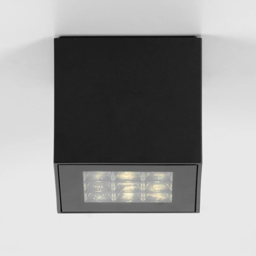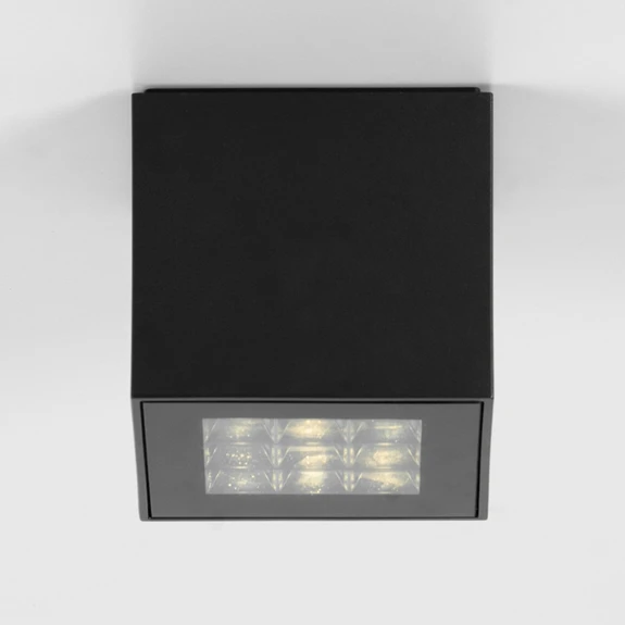 Le plafonnier Blokk est un downlight polyvalent pour l'éclairage direct, conçu dans une forme parallélépipédique sobre et moderne. Le boîtier en aluminium de couleur graphite est équipé de LED orientées vers le bas. Un cache en verre assure la protection nécessaire contre les projections d'eau, ce qui permet une utilisation dans la salle de bains et à l'extérieur.