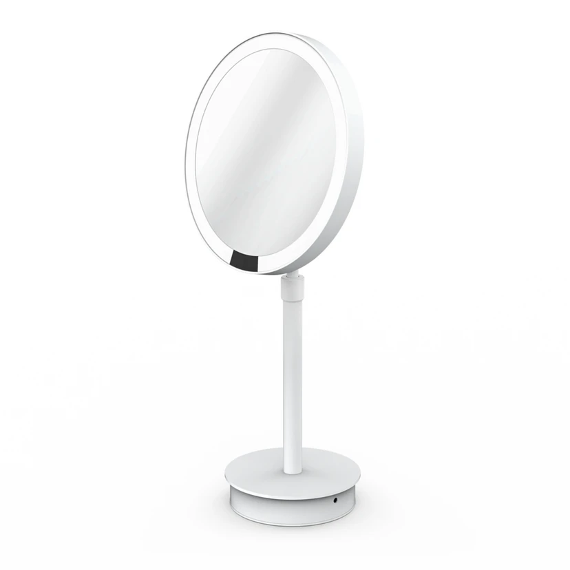 Miroir cosmétique à poser à LED Just Look Plus SR 7X à intensité variable en continu, couleur de lumière réglable, capteur inclusLe miroir cosmétique à poser à LED Just Look Plus SR 7X se caractérise par un design fin et moderne. Le grossissement sept fois combiné à la couleur de la lumière réglable en continu permet une vision optimale.Just Look Plus SR 7X est équipé d'un capteur automatique qui peut être activé ou désactivé par un interrupteur. Celui-ci allume l'éclairage lorsqu'on s'approche du miroir et l'éteint automatiquement après 15 secondes lorsqu'on s'éloigne du miroir. De même, l'éclairage LED du miroir cosmétique est réglable en continu, ce qui permet de l'utiliser dans différentes conditions d'éclairage. Le réglage en hauteur, associé à une surface de miroir pivotante et basculante, permet une utilisation individuelle du miroir.- batterie rechargeable et remplaçable incluse- câble de chargement USB et bloc d'alimentation inclus- surface de miroir pivotante et basculante- hauteur réglable de 38 à 44 cm