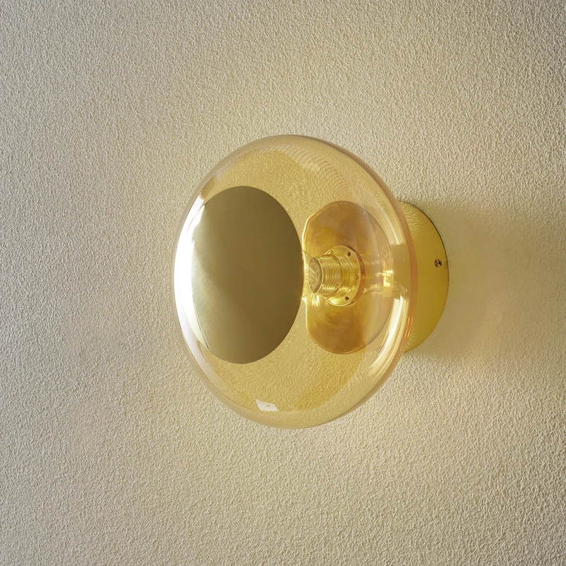 Applique murale Horizon à rayonnement omnidirectionnel avec abat-jour en verre - de EBB & FLOW À partir d'un support mural rond en métal doré, le bel abat-jour soufflé à la bouche se courbe dans la pièce, mettant visuellement en valeur l'applique murale Horizon. Le choix d'une ampoule décorative, comme celles disponibles via les accessoires, permet d'augmenter encore l'attrait décoratif de ce diffuseur de lumière supplémentaire inhabituel. La lumière est diffusée de tous les côtés et crée une atmosphère confortable dans la pièce. L'abat-jour est en verre soufflé à la bouche. Chaque lampe est unique ; pour des raisons de fabrication, il peut y avoir de légères différences telles que de petites inclusions d'air, etc. - Utilisable de manière polyvalente dans les espaces privés ainsi que dans l'hôtellerie