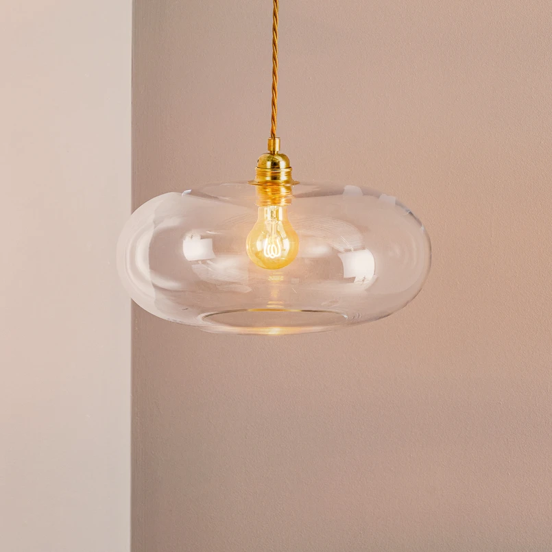 L’abat-jour est en verre soufflé. Chaque lampe est unique : en raison du processus de fabrication, il peut exister de légères différences, comme de petites bulles d'air, etc.