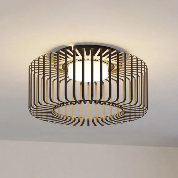 Plafonnier LED Ginestrone-Z, Eglo connect, CCT, RVB Le plafonnier LED Ginestrone-Z de la gamme Smart Home connect.z est fabriqué avec un abat-jour rond en bandes métalliques plates noires avec un profilé LED intérieur derrière un plastique blanc. Les bandes métalliques créent des jeux d'ombre et de lumière fascinants dès que le luminaire est allumé. Les LED intégrées diffusent une lumière agréable à souhait. Il est possible de choisir entre une lumière blanc chaud, blanc neutre ou blanc froid et une multitude de couleurs de lumière RVB. Le luminaire est commandé via l'application gratuite (AwoX Home Control) et permet d'accéder à d'autres fonctions de confort comme la variation d'intensité, la minuterie, la simulation de présence et bien d'autres encore. Le plafonnier est commandé via Bluetooth et ZigBee 3.0 et peut également être commandé par des assistants vocaux compatibles. Au lieu d'être contrôlé par l'application, le plafonnier intelligent peut également être commandé par une télécommande vendue séparément. Le luminaire noir s'intègre parfaitement dans les intérieurs modernes. Il offre un design moderne pour chaque pièce, qu'il s'agisse de la cuisine, du salon, de la chambre à coucher ou du couloir.