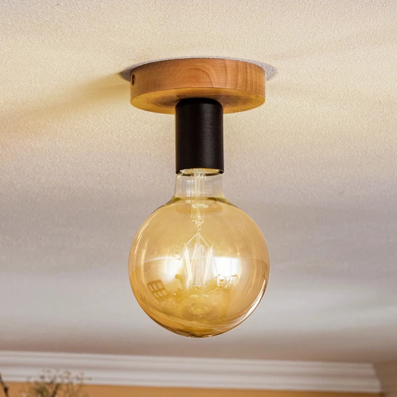 Plafonnier Esan à 1 lampe en bois de hêtre avec douille noire