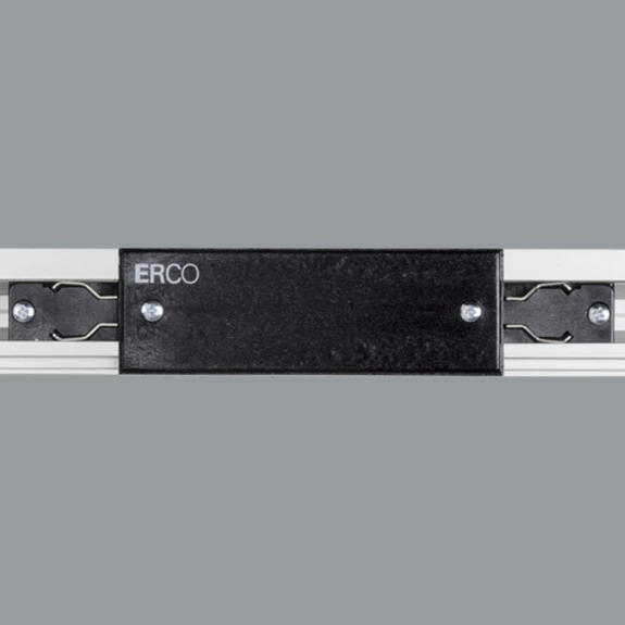 Raccord droit pour rails triphasés ERCO Ce raccord avec boîtier en plastique sert de liaison droite entre deux rails triphasés. Alimentation possible, câblage continu.