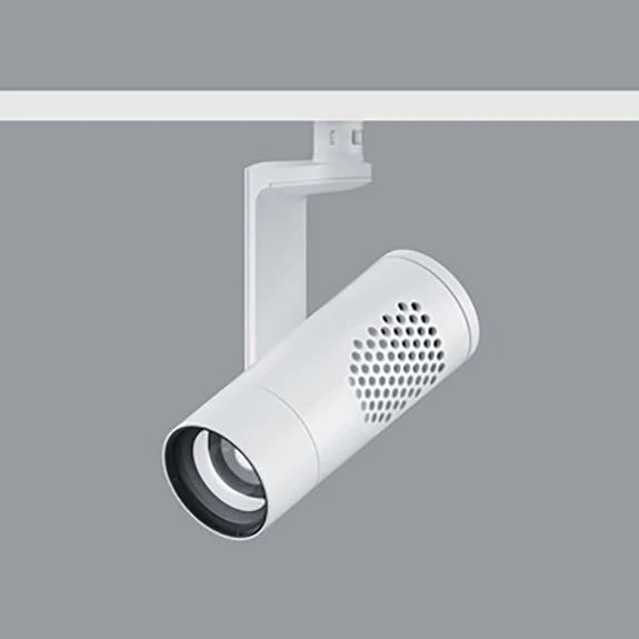 Avec un faisceau lumineux de largeur moyenne, le projecteur à LED Eclipse S d'ERCO, conçu pour les rails Minirail 48 V, éclaire par exemple les surfaces de vente et d'exposition. La tête cylindrique du luminaire est fabriquée en fonte d'aluminium et dispose de LED haute puissance intégrées, dont la lumière est émise à travers une optique collimatrice en polymère optique et une lentille darklight. Avec une possibilité de pivotement de 270° et de rotation de 360°, la fixation avec potence et adaptateur de rail offre une excellente flexibilité. La commande s'effectue de manière très moderne avec l'application Casambi sur le smartphone/la tablette ; la connexion est établie via Bluetooth.