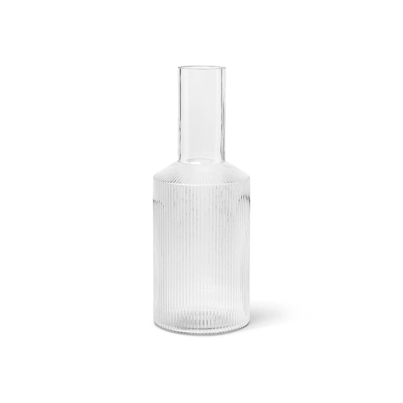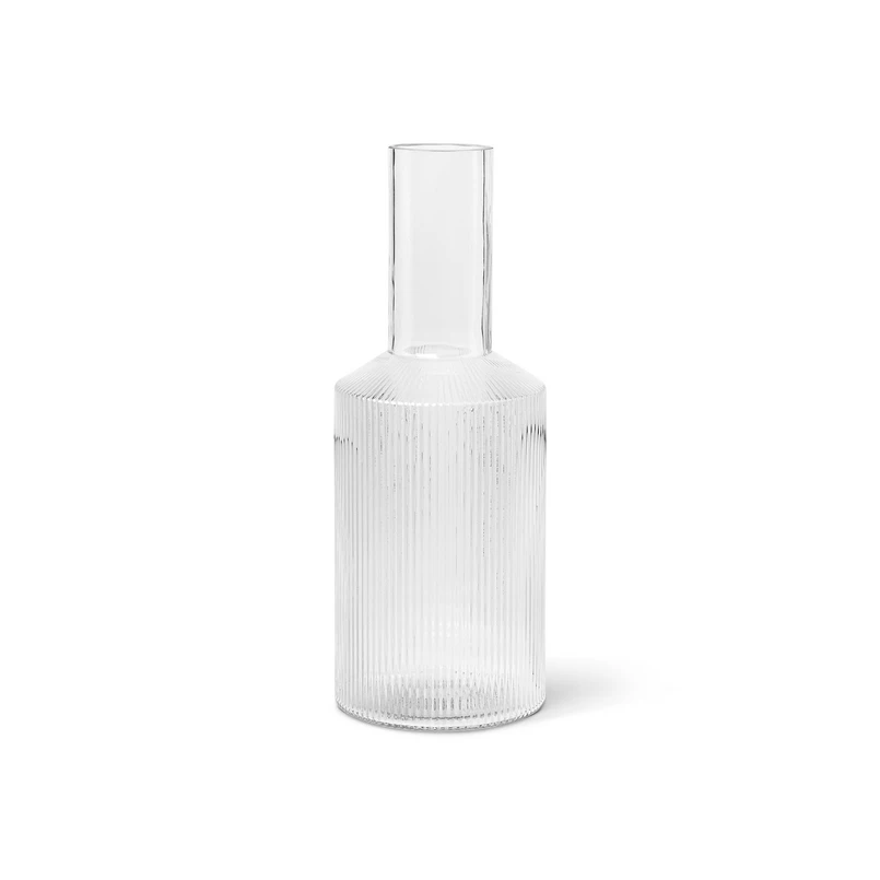 Carafe Ripple en verre soufflé, 1 litre Cette pratique et belle carafe Ripple soufflée à la bouche avec sa surface striée offre un aspect moderne. Remplissez-la d'eau, de jus de fruits ou de votre boisson préférée, et servez la boisson dans les verres assortis (non inclus, voir accessoires). Informations sur le produit : En verre soufflé à la bouche. Volume : 1 litre. Conseil d'entretien : passe au lave-vaisselle.