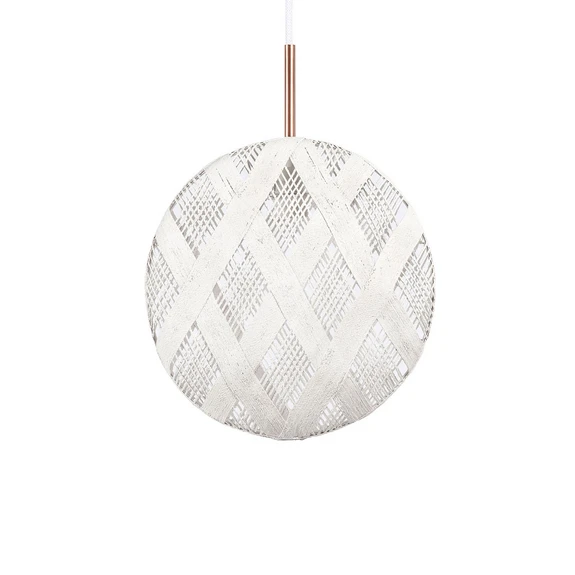 Suspension en chanvre Chanpen de la maison Forestier Chanpen est le nom de la série de luminaires que le designer Anon Pairot a développée pour le fabricant français de luminaires Forestier. Chanpen signifie pleine lune et en dit long sur la forme du luminaire. L'abat-jour est circulaire et ressemble effectivement à une pleine lune en se balançant du Deck. La particularité du matériau de l'abat-jour est qu'il est fabriqué en abacá, c'est-à-dire en fibres de chanvre spéciales. Les fibres d'épaisseurs différentes sont enroulées autour de la structure de l'abat-jour selon un motif en losange qui rappelle la taille des diamants. Anon Pairot a déjà travaillé pour des entreprises de renom telles que Fendi, Habitat ou Grohe et a pu satisfaire chez Forestier sa préférence pour travailler avec des matériaux naturels et durables en créant avec Chanpen un luminaire en chanvre.