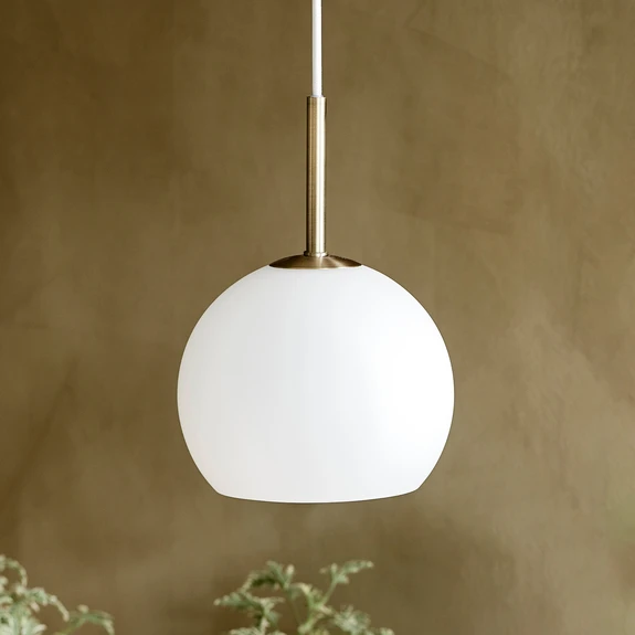 Suspension Ball avec abat-jour en verre La suspension Ball de FRANDSEN fascine par son design moderne. Elle s'intègre harmonieusement dans différents concepts de pièces, que ce soit dans le salon, la salle à manger ou le couloir. Le luminaire n'est pas seulement un accessoire de style, mais aussi un élément fonctionnel qui influence considérablement l'atmosphère d'une pièce. Qu'elle soit utilisée comme source de lumière générale ou comme diffuseur de lumière de zone, la suspension Ball attire partout l'attention. - intensité variable externe