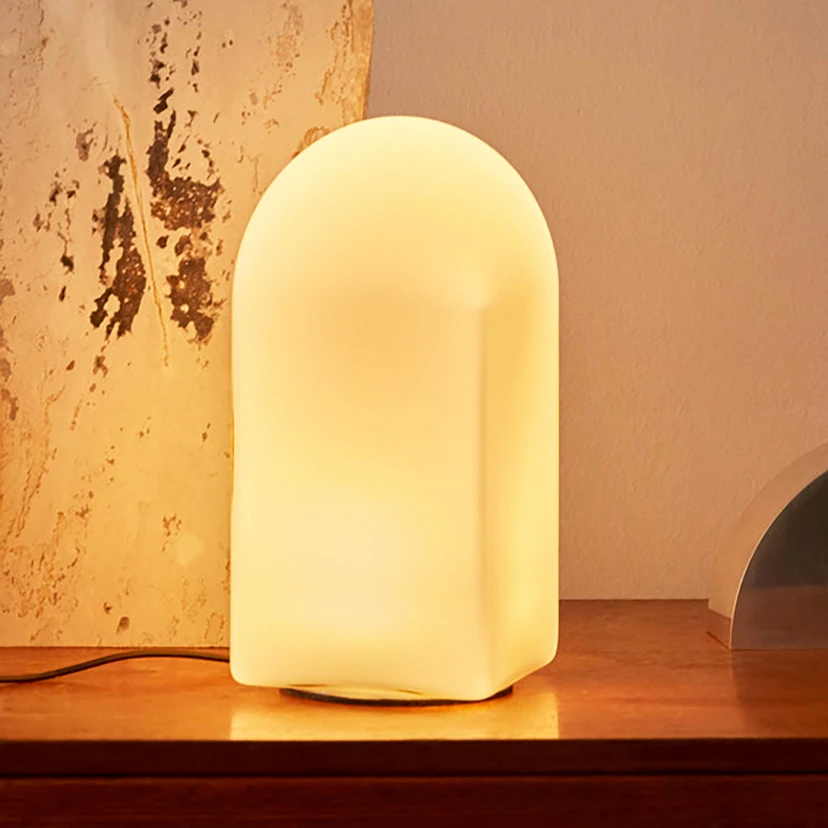 La lampe de table LED Parade du couple de designers danois Viola Heyn-Johnsen et Jonas Trampedach est fabriquée par le fabricant Hay en trois tailles, ce qui permet d'utiliser la lampe de table non seulement individuellement, mais aussi en groupe. Le socle carré et l'abat-jour bombé en verre confèrent à la lampe un caractère presque sculptural, la forme géométrique faisant que l'optique se présente différemment selon l'angle de vue.