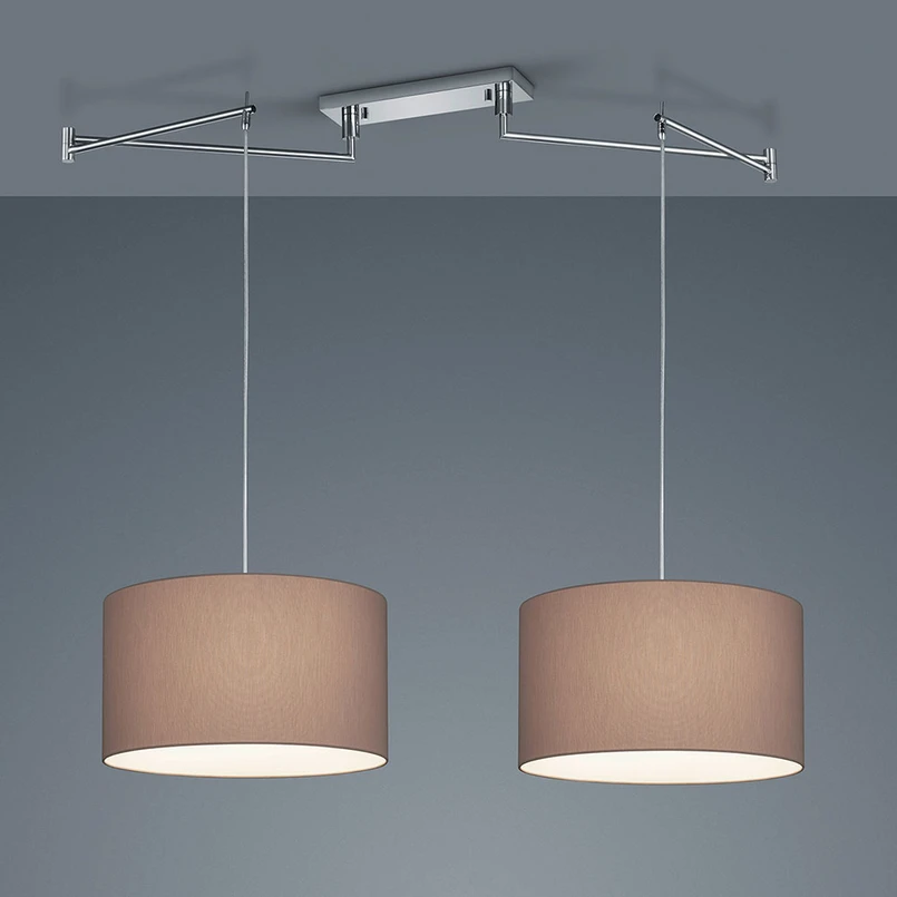 Suspension textile à deux flammes Certo avec bras articulés flexibles - abat-jour en forme de cylindre