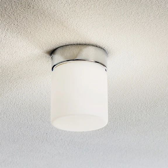 Plafonnier LED Keto au design cylindrique et à l'éclairage blanc chaudLe plafonnier LED Keto de forme cylindrique permet non seulement d'éclairer agréablement la salle de bains, mais aussi de l'agrandir avec style, car son élégant abat-jour en verre opale fait de ce plafonnier une source de lumière particulièrement attrayante. La lumière est produite à l'intérieur de l'abat-jour en verre opale par une LED à lumière blanche chaude et est diffusée dans l'environnement à travers l'abat-jour sans être éblouie. Keto est également idéal pour éclairer des salles de bains plus grandes, car il peut être combiné avec d'autres luminaires, ce qui permet d'augmenter la puissance d'éclairage avec chaque luminaire supplémentaire