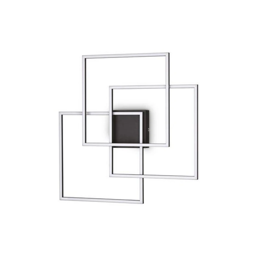Applique murale LED Frame noire au design carré D'un design moderne, l'applique murale LED Frame est très lumineuse et efficace sur le plan énergétique. Elle est équipée de trois cadres métalliques carrés, positionnés de manière à se chevaucher et dotés chacun de LED blanc chaud sur la face avant. L'applique murale Frame offre ainsi un éclairage d'ambiance contemporain et efficace pour l'habitat.