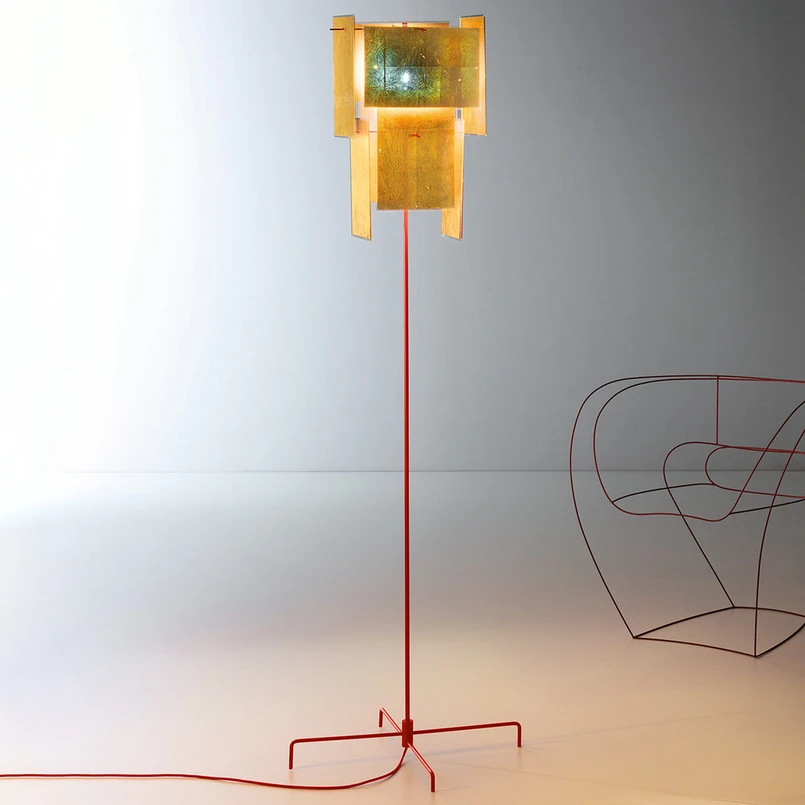 Ingo Maurer 24 Karat Blau lampadaire, tiges rouges