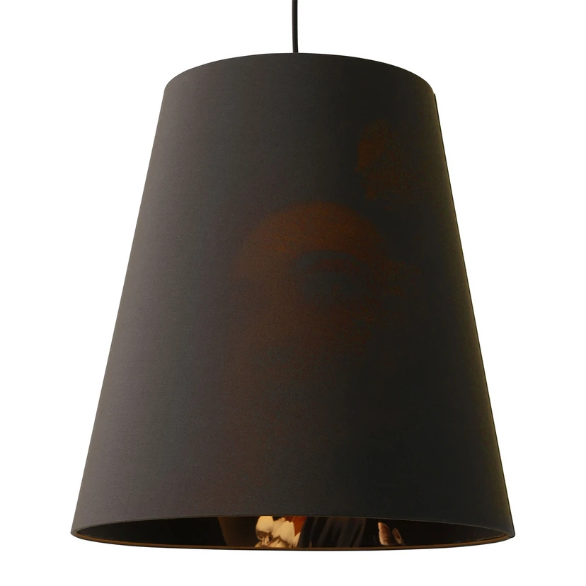 Le luminaire suspendu Cupido combine la teinte textile classique du coton en anthracite foncé et la forme tronconique s'ouvrant vers le bas avec un look élégant. Le portrait d'une dame imprimé à l'intérieur est mis en valeur par la lampe. Le nom - Cupidon est un nom alternatif pour le dieu romain de l'amour Amor - représente l'objectif du designer Matteo Ugolini de parvenir à une fusion harmonieuse entre l'éclairage direct fonctionnel de la zone située en dessous et l'effet décoratif des graphiques à l'intérieur.