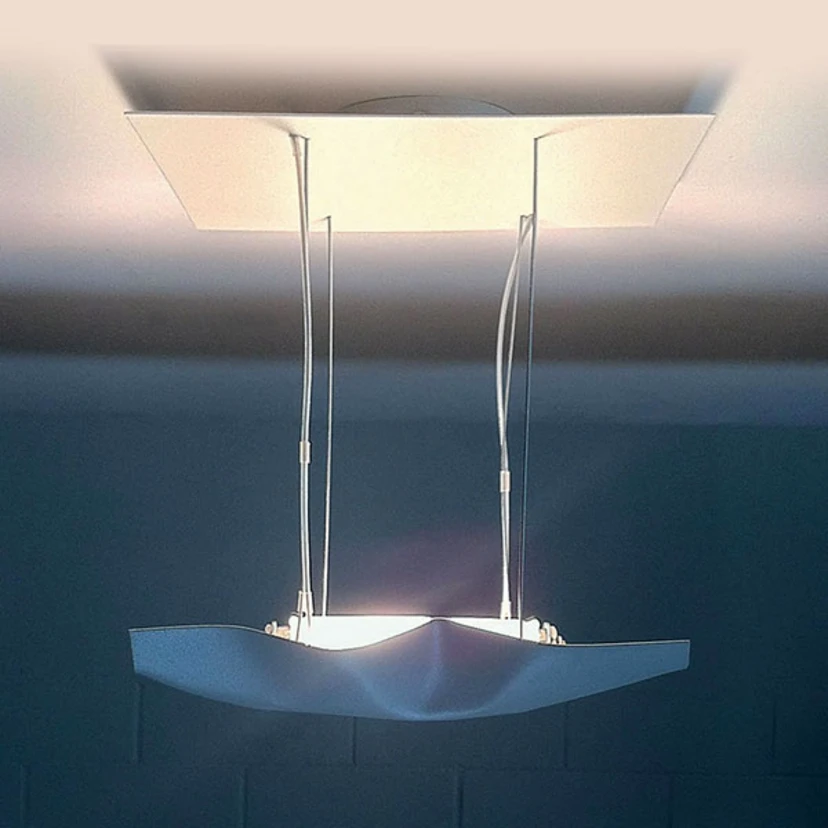 Plafonnier LED Piccola Crash original en blanc stylé pour une lumière claire et atmosphériqueLa forme plastique et un jeu de contrastes réussi caractérisent ce modèle attrayant. Les concepteurs du plafonnier LED Piccola Crash ont misé sur une interprétation fantaisiste du simple rectangle qui apparaît comme élément de plafond et qui est artistiquement posé en vagues comme abat-jour. La couleur blanche confère au plafonnier compact un look élégant et décent et fait paraître toute la pièce plus lumineuse. L'élément de plafond, qui agit comme un réflecteur, crée un effet lumineux intéressant. Chaque lampe Piccola Crash est fabriquée à la main, ce qui lui confère une touche individuelle unique. Ce modèle s'intègre avec succès dans différents univers d'habitation, par exemple dans divers concepts modernes exigeants. Mais le plafonnier LED Piccola Crash sans fioritures s'adapte également à des idées d'intérieur plutôt nordiques et même puristes. Ce luminaire design permet de créer avec succès une solution d'éclairage pour le couloir, la chambre à coucher ou un salon relativement petit. Des lampes avec un décor métallique ou des abat-jour en verre sobres peuvent être utilisées en complément.