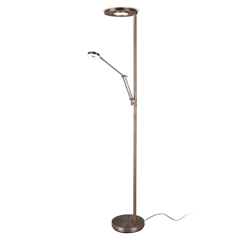 Lampadaire à éclairage indirect LED Barrie avec lampe de lecture LED laiton