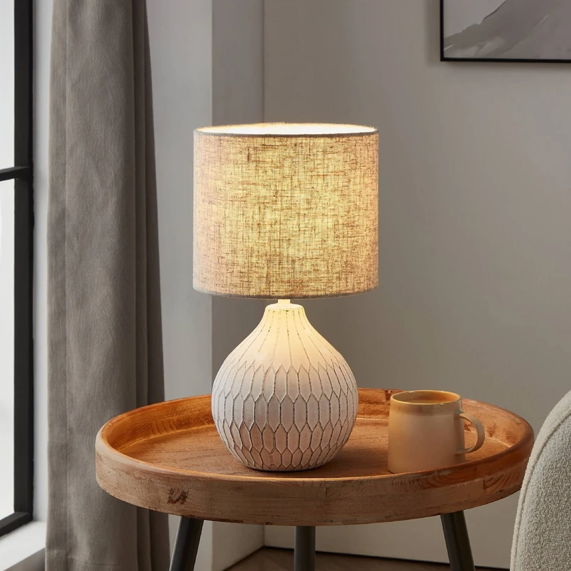 Lampe à poser Bellariva 3, blanc/brun clair Délai de livraison : 8 - 11 semaines
