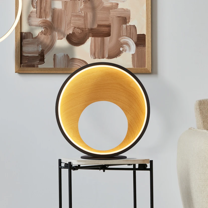 Lampe de table LED Curio avec abat-jour aspect bois et variateur d'intensité intégré La lampe de table LED Curio est un luminaire moderne équipé d'une source lumineuse LED intégrée d'un blanc chaud. Grâce à sa lumière agréable, elle convient parfaitement comme lampe décorative pour le salon, la chambre à coucher ou la salle à manger. L'intensité de ce luminaire LED peut en outre être variée en continu grâce à un interrupteur coulissant situé sur le câble. Son abat-jour en silicone a un bel aspect bois. Sa structure en acier laqué noir assure sa stabilité. Curio confère à chaque pièce une atmosphère agréable et crée une ambiance chaleureuse. Avec cette lampe de table LED, chaque pièce devient un lieu de détente et de bien-être.