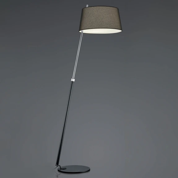 Lampadaire David réglable en hauteur avec abat-jour en tissu gris et structure en acier inoxydable noir Le lampadaire David présente une apparence très élégante et moderne, ce qui lui permet de se combiner avec divers styles d'aménagement. Le pied noir en acier inoxydable dispose d'un dispositif télescopique qui permet de faire varier la hauteur du luminaire de 110 à 170 cm. La surface grise de l'abat-jour diffuse une lumière agréable et extraordinairement confortable vers le bas, ce qui fait de David une source d'éclairage idéale pour la lecture ou un éclairage d'appoint harmonieux pour le salon, la chambre à coucher ou le bureau. L'interrupteur à pédale permet d'allumer et d'éteindre facilement la lampe.