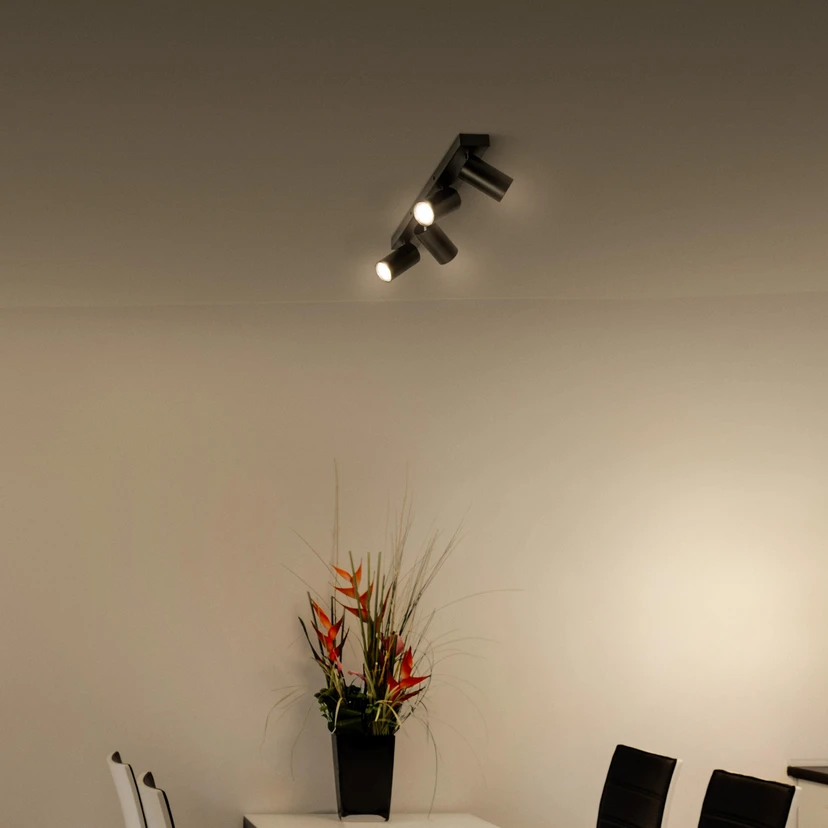 Spot pour plafond LED Octagon de forme allongée, à quatre lampes, à intensité variable Octagon est un spot pour plafond LED de forme allongée, équipé de quatre lampes orientables et inclinables. Il est fabriqué en acier avec une finition mate et est livré avec des ampoules LED GU10 à intensité variable. Pour orienter l'éclairage vers différentes zones de la pièce, les quatre spots peuvent être tournés et orientés. Les spots LED de la série Octagon se caractérisent par un design intemporel, un boîtier de haute qualité en acier avec une finition mate, une grande polyvalence d'utilisation et une longue durée de vie grâce aux ampoules LED interchangeables - ampoules LED OSRAM à intensité variable incluses - montage facile - accessoires de montage et de connexion complets inclus.