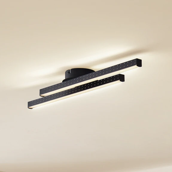 Plafonnier LED moderne Aurendor avec deux rampes lumineuses Ce plafonnier de belle forme Aurendor illumine votre intérieur. Ce plafonnier de la qualité de la marque Lindby est synonyme de design de bon goût et de confort unique. Il diffuse une agréable lumière blanche chaude. Le plafonnier complète parfaitement votre concept d'aménagement personnel grâce à son beau style et devient également un élément décoratif lorsqu'il est éteint. Il crée une belle atmosphère et met en scène chaque pièce de vie. Le plafonnier noir mat est idéal pour enrichir le concept de votre pièce. Créez un éclairage attrayant dans vos quatre murs avec le plafonnier Aurendor.