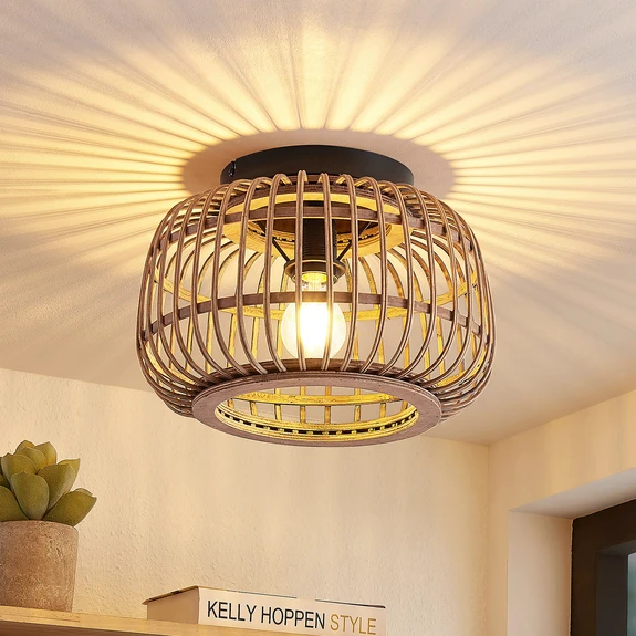 Plafonnier Bominio avec abat-jour en rotin dans une ambiance chaleureuse de maison de campagne Avec le plafonnier Bominio, on obtient un éclairage idéal et une atmosphère confortable dans sa propre maison. Un variateur d'intensité variable externe permet de créer une atmosphère de bien-être. Le plafonnier a un culot E27. Il est polyvalent et trouve une place de choix dans chaque pièce. Le modèle Bominio, de qualité Lindby, offre une expérience de vie convaincante et un design exceptionnel. Même éteint, le plafonnier de style nordique peut servir d'élément décoratif.