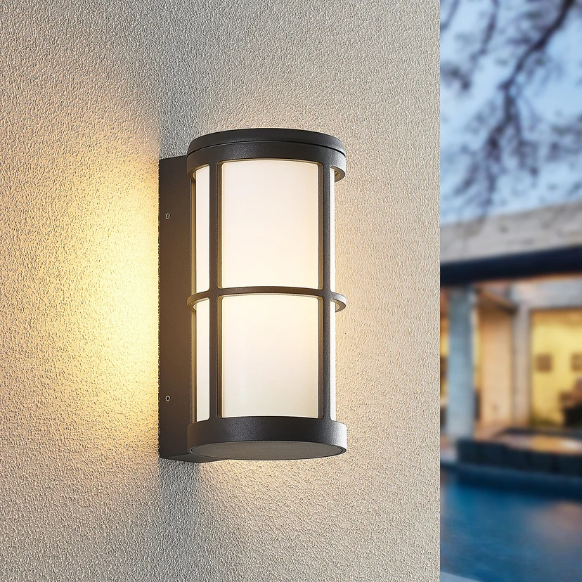 Le luminaire mural d'extérieur Kelini gris foncé est une source de lumière qui, grâce à son design intemporel, s'intègre dans différents styles de décoration extérieure. Le cadre est en aluminium robuste et est complété par un abat-jour en plastique. La forme cylindrique donne au luminaire un aspect moderne.