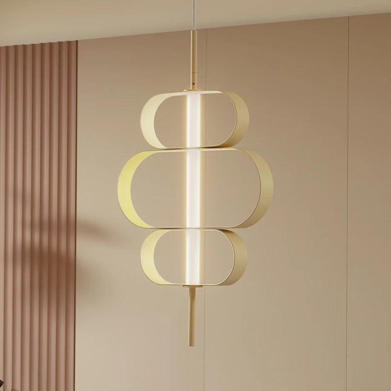 Suspension LED Audrina au design rétro La suspension LED Audrina, d'un beige feutré, pose de nouveaux jalons en matière d'éclairage d'ambiance. Avec son style moderne et inhabituel, elle crée une atmosphère qui invite aussi bien à des dîners détendus qu'à des conversations animées. La source lumineuse LED intégrée garantit un éclairage uniforme et sans scintillement, ce qui augmente le bien-être et ménage les yeux. La source lumineuse traverse verticalement, comme une tige, les trois anneaux ovales dont les trajectoires forment les abat-jours. Bien qu'un variateur d'intensité ne soit pas fourni, la luminosité de la lampe peut être facilement réglée à l'aide d'un variateur d'intensité externe afin de pouvoir adapter l'intensité lumineuse à chacun.
