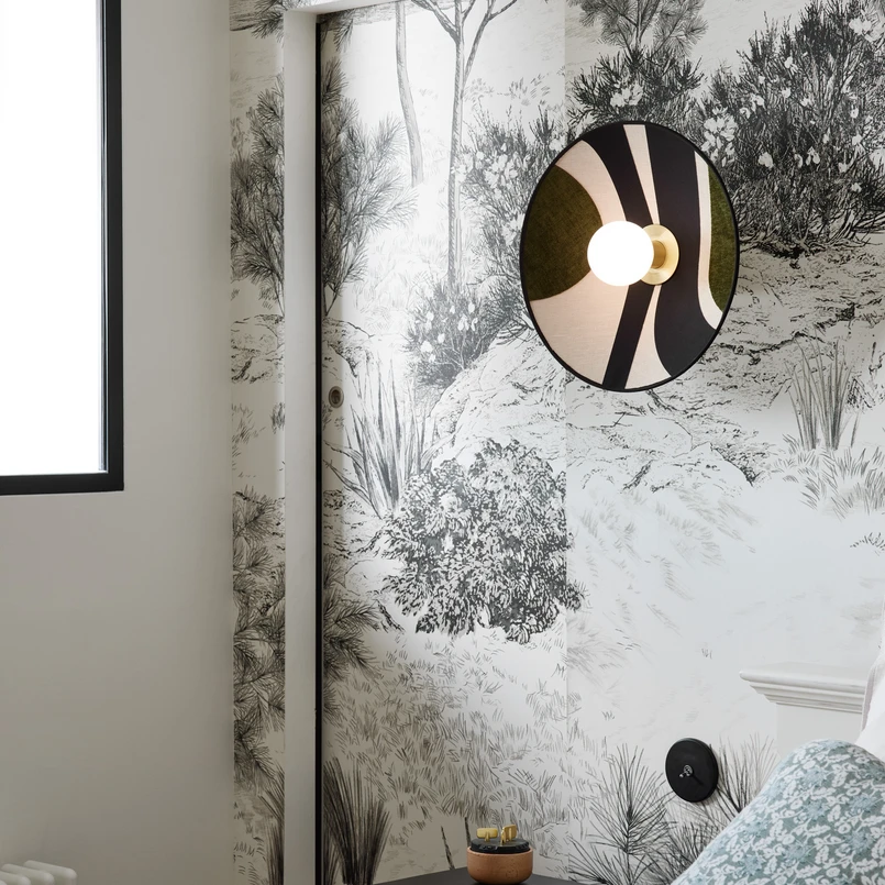 Applique murale ronde Sonia Laudet avec abat-jour textile à motif décoratif Cette applique murale, une fois éteinte, attire déjà l'attention dans chaque pièce grâce au motif décoratif de l'abat-jour textile qui entoure la douille en métal sablé. Dès que l'éclairage est allumé, la lumière de la lampe utilisée illumine librement l'environnement. Le choix d'une ampoule décorative, qui peut être commandée séparément via les accessoires, permet d'augmenter encore l'attrait esthétique de l'applique murale Sonia Laudet. Cette applique murale permet non seulement d'obtenir un éclairage d'appoint d'ambiance dans le salon, les chambres à coucher et les couloirs, mais aussi d'apporter une touche très décorative à l'aménagement intérieur. Cette série de luminaires est le résultat de la coopération entre la designer française Sonia Laudet, qui porte le même nom, et le label de luminaires MARKET SET.