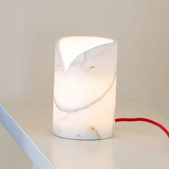 Lampe de table Colletto comme un cylindre en marbre blanc