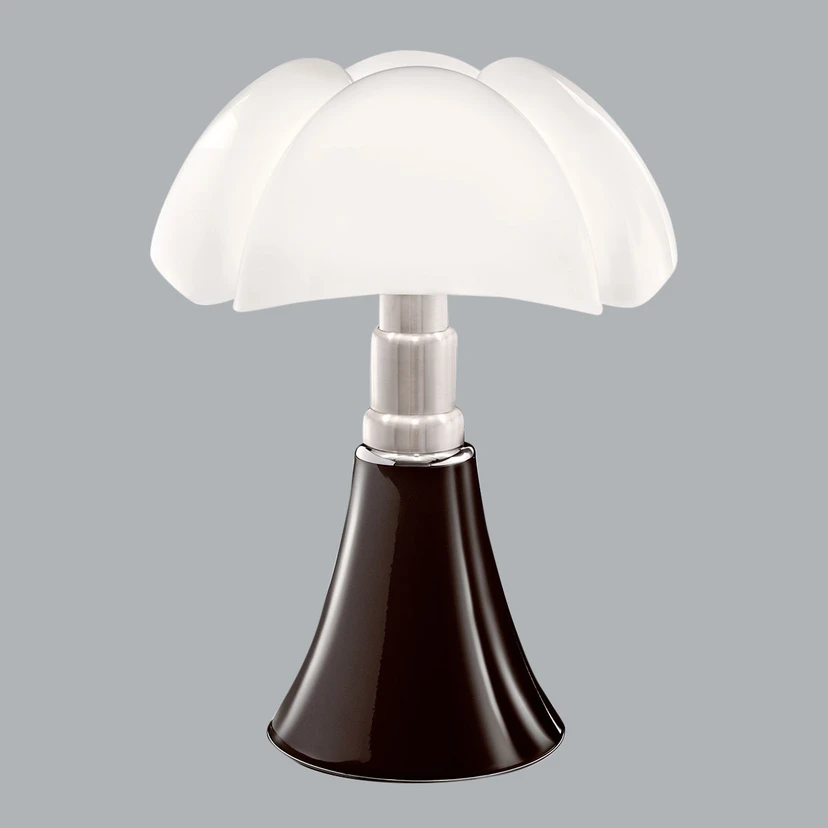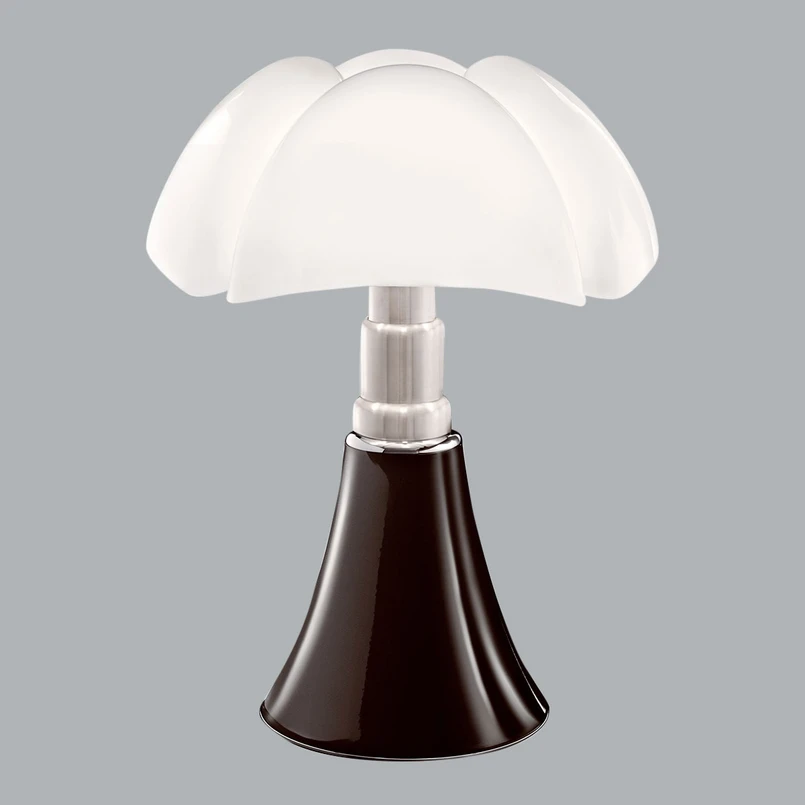 Le luminaire Minipipistrello a déjà remporté plusieurs prix de design et provient de la célèbre société d'éclairage Martinelli Luce. Le design Minipipistrello a été créé en 1965 par la célèbre designer et architecte Gae Aulenti, qui est connue pour ses nombreux travaux artistiques dans le domaine de l'architecture et du design. En 1987, la créatrice a été faite chevalier de la Légion d'honneur par le président français François Mitterrand pour son rôle dans la transformation de la gare d'Orsay à Paris en musée.