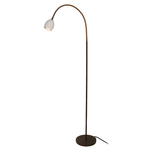 Le lampadaire Provence mat se présente dans un style maison de campagne moderne, qui se compose d'une base ronde avec une tige arquée en fer design brun-noir et d'un abat-jour en céramique blanc mat. Dans la partie supérieure, la tige est conçue comme un bras flexible, de sorte que l'abat-jour peut toujours être parfaitement ajusté pour amener le cône lumineux dans la position souhaitée. Pour cette raison, le petit lampadaire est parfait pour servir de lampe de lecture dans le salon, à côté du fauteuil préféré.