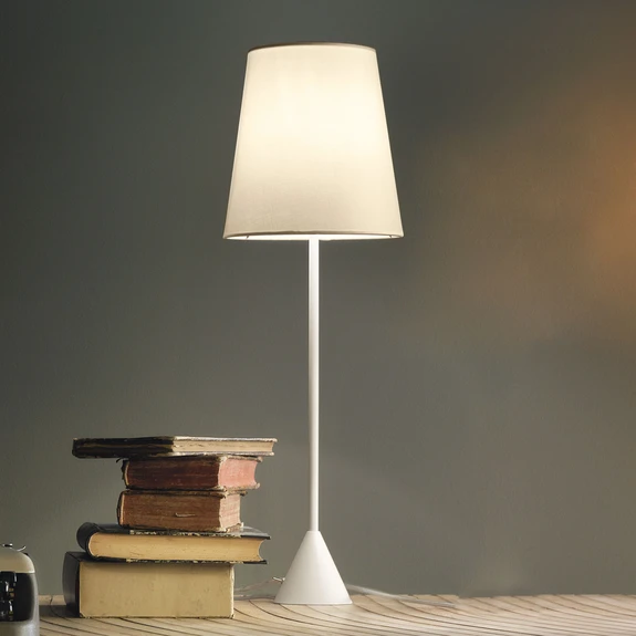 Lampe à poser Lucilla au look moderne et élégant Les distributeurs de lumière d'appoint comme la plus grande des deux lampes à poser de la série de luminaires Lucilla de Paolo Grasselli, un designer italien qui a créé cette gamme de produits pour l'entreprise de luminaires Modo Luce, sont idéaux aussi bien dans le domaine privé que public, comme par exemple dans les suites d'hôtel. Lucilla fournit un éclairage d'appoint doux qui crée une ambiance chaleureuse et, même non éclairée, elle est très décorative et met en valeur un style d'habitat actuel. Lucilla s'allume et s'éteint à l'aide de l'interrupteur à bascule situé sur le pied, dont la jolie forme conique constitue un détail enchanteur. L'entreprise italienne de luminaires Modo Luce s'attache à donner forme à la lumière, avec des designs aussi créatifs que possible, qui conviennent aussi bien aux espaces publics que privés.