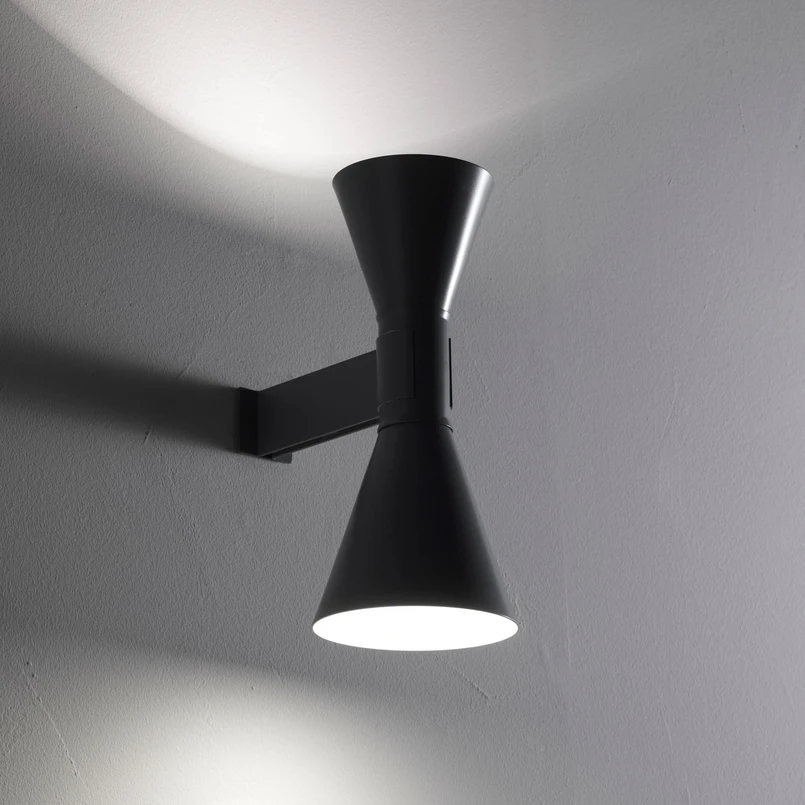 Applique murale Up&Down Applique de Marseille La série à laquelle appartient cette applique murale a été conçue par l'architecte franco-suisse Le Corbusier pour son nouveau type d'habitation "Unité d'Habitation", mis en œuvre pour la première fois à Marseille en 1947. L'applique murale Applique de Marseille a été conçue par Le Corbusier pour son appartement parisien. Elle transpose le motif de la série du double abat-jour sous une forme simplifiée ; Applique de Marseille est équipée de deux abat-jours cylindriques étroits de taille légèrement différente, orientés respectivement vers le haut et vers le bas. La finition monochrome et la forme simple et épurée donnent une applique murale discrète qui peut être intégrée dans de nombreux concepts d'aménagement.
