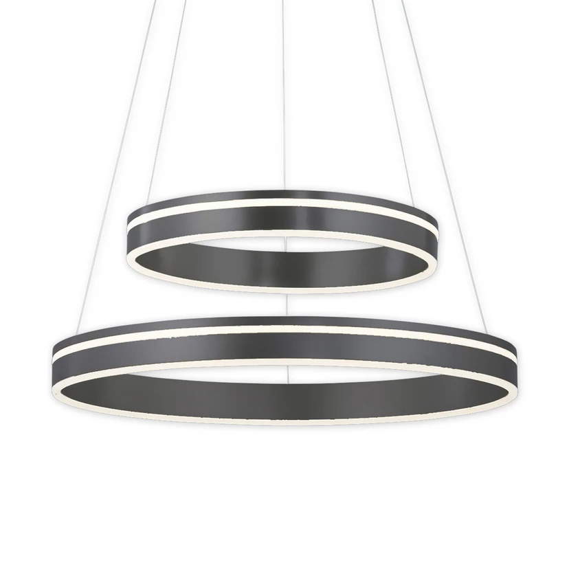Suspension LED à deux flammes Q-VITO avec télécommande, compatible ZigBeeLa suspension LED Q-VITO se compose de deux éléments lumineux de taille différente, en forme d'anneau, qui pendent d'un baldaquin rond. La lampe suspendue convient par exemple à l'éclairage de la table du salon ou de la salle à manger. La lumière sort par le haut et par le bas de l'anneau et peut être facilement contrôlée à l'aide de la télécommande fournie. Il est possible de faire varier l'intensité de la lumière, de changer la couleur de la lumière de blanc chaud à blanc universel ou de sélectionner différents scénarios d'éclairage. Grâce à la fonction de mémoire, le réglage de la lumière est enregistré. Q-VITO est en outre compatible avec ZigBee et peut être intégré dans les systèmes de maison intelligente correspondants. Un contrôle supplémentaire est alors possible via une application ou une commande vocale.Caractéristiques techniques/compatibilité:- dimmable- température de lumière réglable de blanc chaud à blanc universel- fonction mémoire- commutation de jusqu'à 20 luminaires Q individuels ou ampoules Q en 3 groupes maximum avec une seule télécommande Q- compatible ZigBee- contrôlable avec la télécommande- commande vocale par Echo (4. Remarque : pour la connexion à un système Smart Home ou la commande par App, un pont est nécessaire ; celui-ci n'est pas inclus dans la livraison