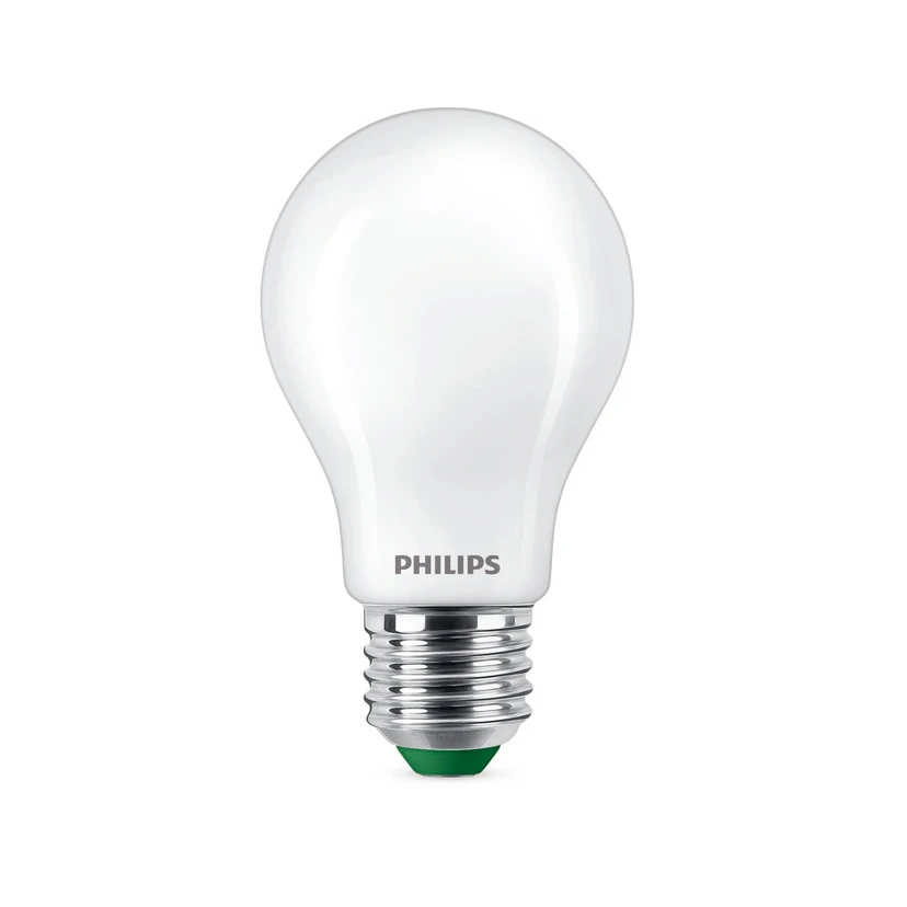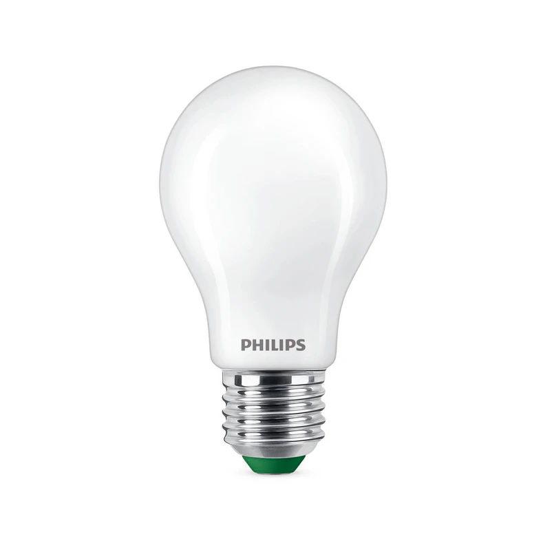 Ampoule LED E27 avec ampoule en verre satiné de 5,2 W, 1095 lm, 2700 K Cette ampoule LED E27 mate de 5,2 W offre une lumière blanc chaud et sert de remplacement durable et efficace en énergie aux ampoules à incandescence traditionnelles de 75 W. Ne peut pas être dimmée. Ultra-efficace - excellente efficacité lumineuse avec 210 lm/W.