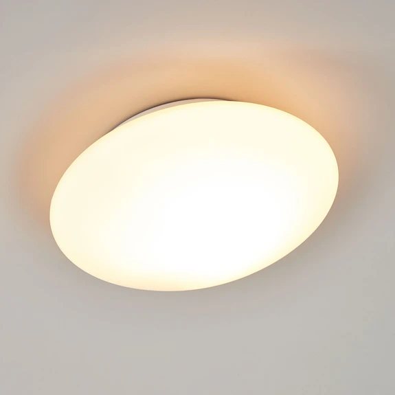 Plafonnier Alba à rayonnement uniforme avec abat-jour rond en verre opalin L'abat-jour en verre opalin satiné du plafonnier Alba assure un éclairage général agréable. L'abat-jour rond est conçu en forme de lentille bombée et est fixé au plafond par un support en acier à l'arrière. Le design du plafonnier Alba est absolument intemporel, ce qui permet de l'utiliser dans presque tous les concepts d'aménagement.
