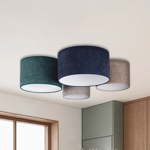 Le plafonnier Boucle allie un design élégant à une polyvalence fonctionnelle. Fabriqué en bouclé de haute qualité et en métal robuste, il offre une combinaison raffinée d'esthétique et de durabilité. La palette de couleurs bleu foncé, vert foncé, cappuccino et gris permet une adaptation harmonieuse à différents aménagements intérieurs, que ce soit dans le salon ou la chambre à coucher. Cette lampe est un chef-d'œuvre européen qui séduit par son origine locale et sa fabrication spéciale en Europe.